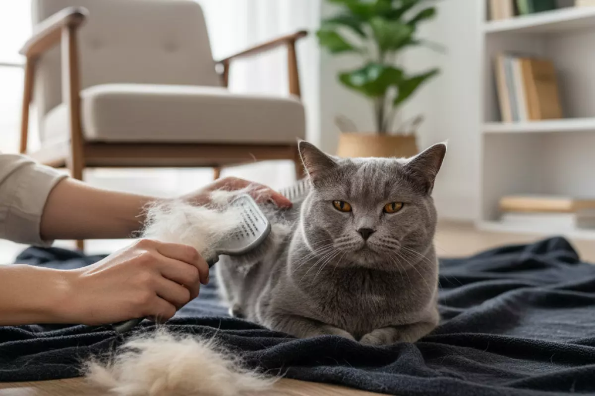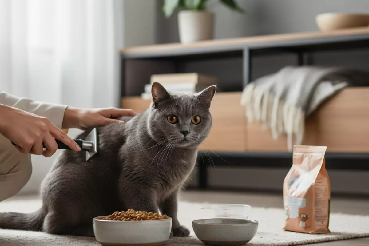 Британская короткошёрстная вылизывается активно, а плотный подшёрсток повышает риск заглатывания волос. Чтобы уменьшить вероятность рвоты шерстяными комками и запоров, полезны вычёсывание, доступ к воде и подходящие добавки по согласованию с врачом.