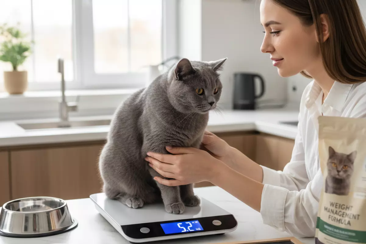 У британцев плотное телосложение и спокойный темперамент, поэтому лишние граммы набираются незаметно: чуть больше порция, чуть меньше игр — и талия «исчезает». Самый простой ориентир дома — регулярное взвешивание и оценка кондиции: ребра должны прощупываться под тонким слоем, а сверху должна читаться легкая «талия».