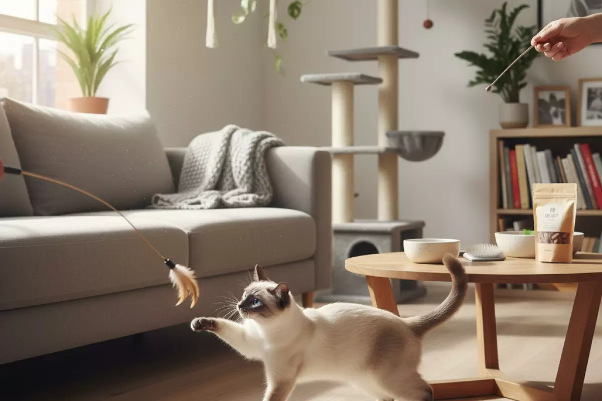 Сиамам обычно мало «поймать мышку на палочке» раз в неделю — им нужны короткие, но регулярные сессии и разнообразие. Лучше несколько подходов по 10–15 минут в день, чем редкие марафоны.