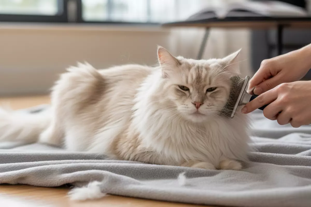 Если после расчёсывания на коже остаются красные полосы, кошка дёргается от каждого движения или шерсть заметно редеет, инструмент или техника подобраны неудачно — лучше перейти на более мягкий вариант и уменьшить нажим.