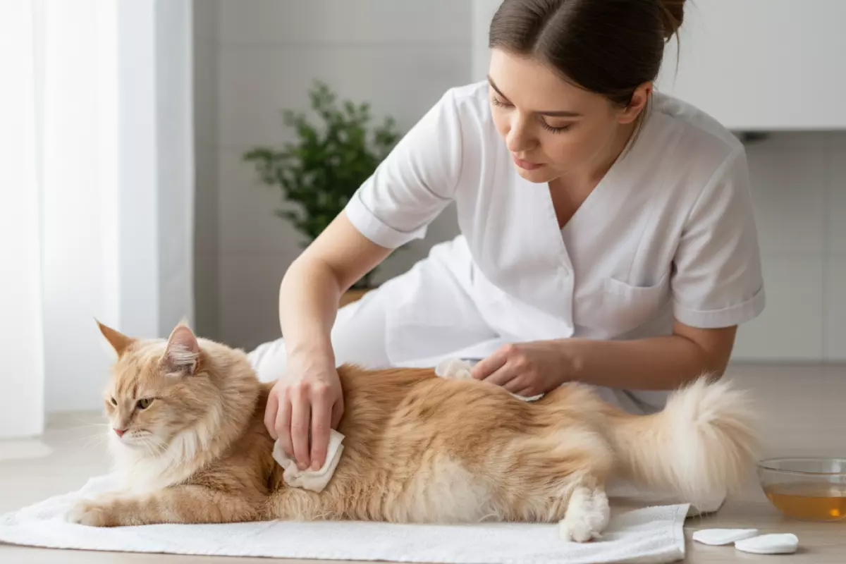 Пыль, сухой воздух и грязный лоток косвенно ухудшают состояние: кошка чаще вылизывается, шерсть быстрее пачкается, кожа раздражается. Проветривание, нормальная влажность и чистота — это тоже часть ухода.