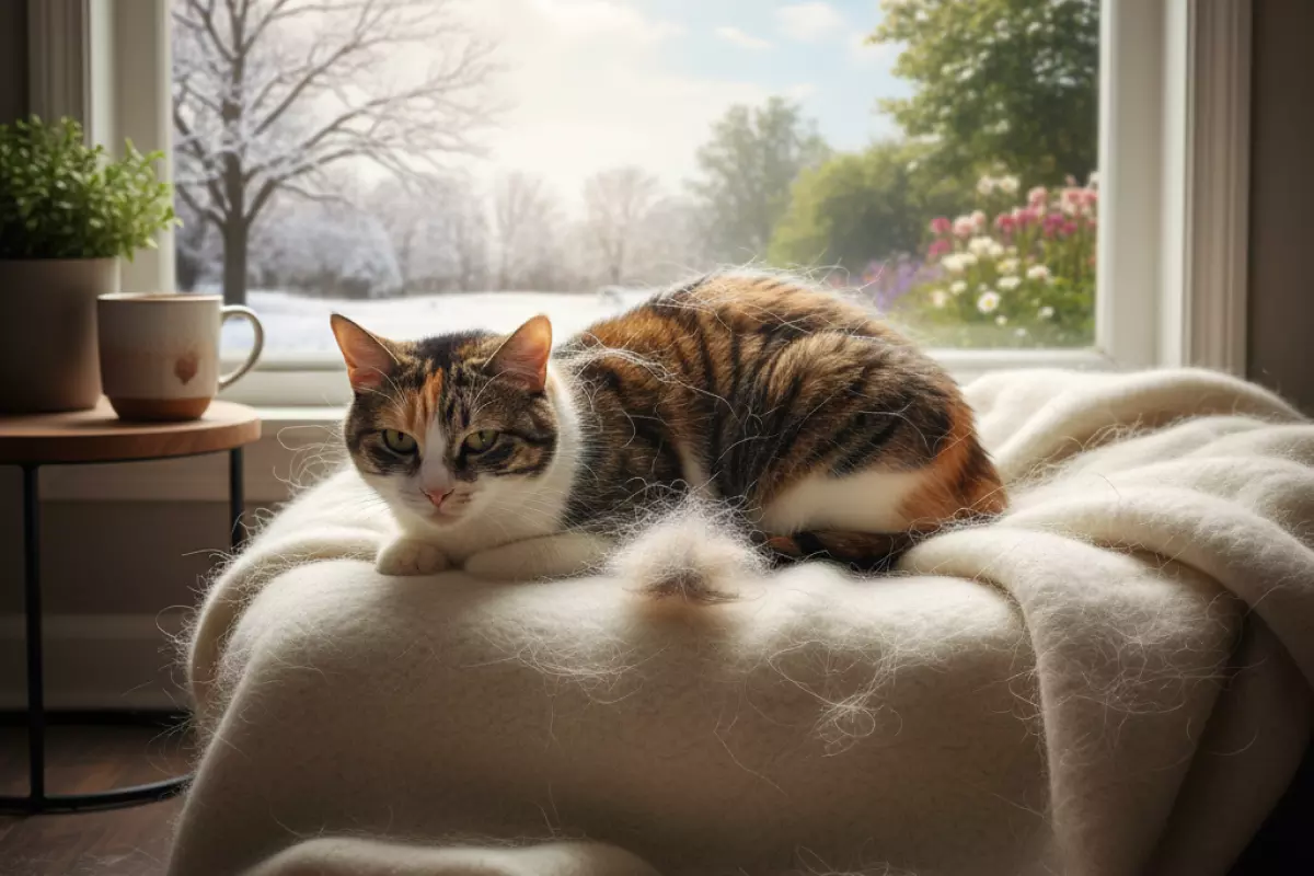 Постоянное тепло и длинный «день» из-за ламп сбивают у кошки сезонные настройки. В природе шерсть обновляется волнами: к холодам нарастает подшёрсток, к теплу — активно выпадает. А когда дома круглый год примерно одинаково комфортно, организм может «не понимать», что сезон сменился, и обновление идёт понемногу, но без пауз.