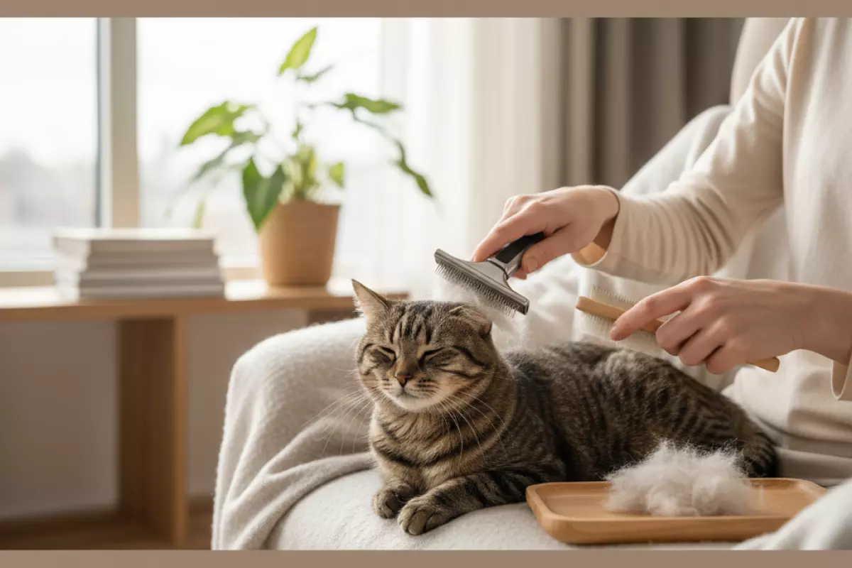 | Редкое вычесывание или «не та» щетка | Подшерсток остается в шубке, больше волос на мебели, колтуны | Подобрать инструмент под тип шерсти, вычесывать короткими сессиями 5–10 минут | Если появляются залысины, раздражение кожи, кошка не дает трогать спину/бока |