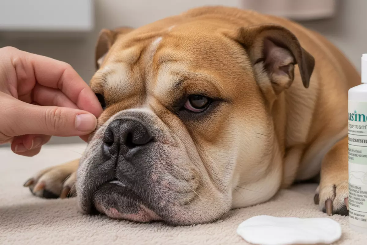 У английского бульдога морщины и кожные «карманы» быстро становятся местом, где скапливаются влага, слюна и остатки корма. Если это не убирать, появляются покраснение, запах, мокнутие и зуд, а дальше — воспаление и дрожжевые/бактериальные проблемы.