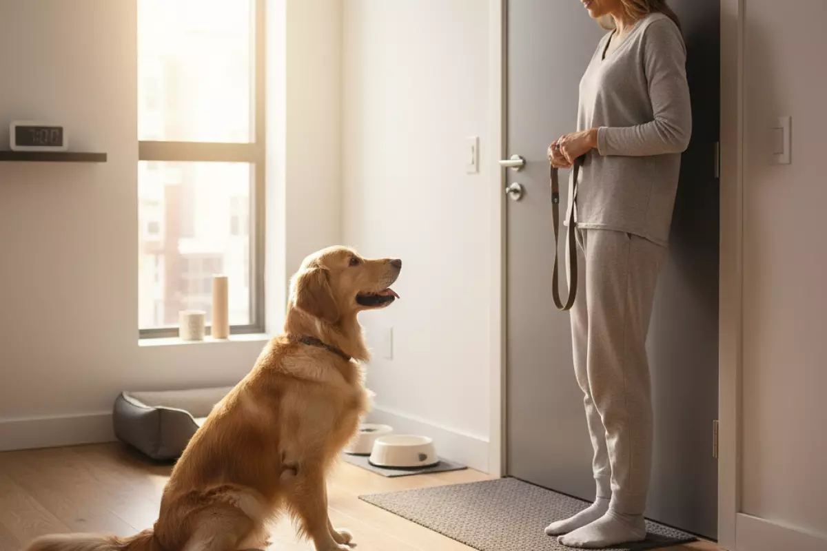 | Утро и сборы хозяина | Суета, прыжки, лай, попытки «не отпустить» | Собака ждёт понятный ритуал и быстрее успокаивается | Короткий выгул/туалет, затем спокойная пауза и кормление |
