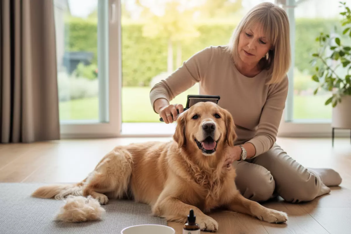Уменьшить количество шерсти на полу проще всего через системный уход: вычёсывание снимает отмерший подшёрсток до того, как он окажется на коврах и одежде. Плюс это быстрый способ заметить колтуны, перхоть, раздражение кожи и вовремя скорректировать уход.