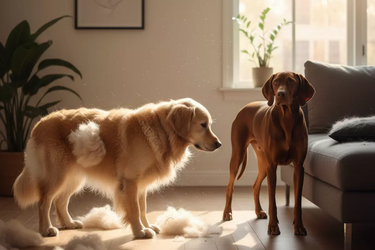 - Тип шерсти и подшёрстка. У двойной шерсти (остевой волос + густой подшёрсток) выпадение обычно выглядит масштабнее, чем у гладкошёрстных пород.