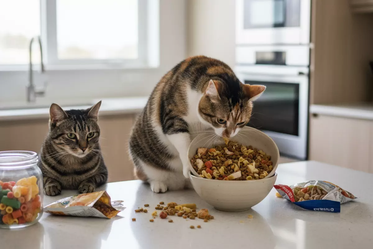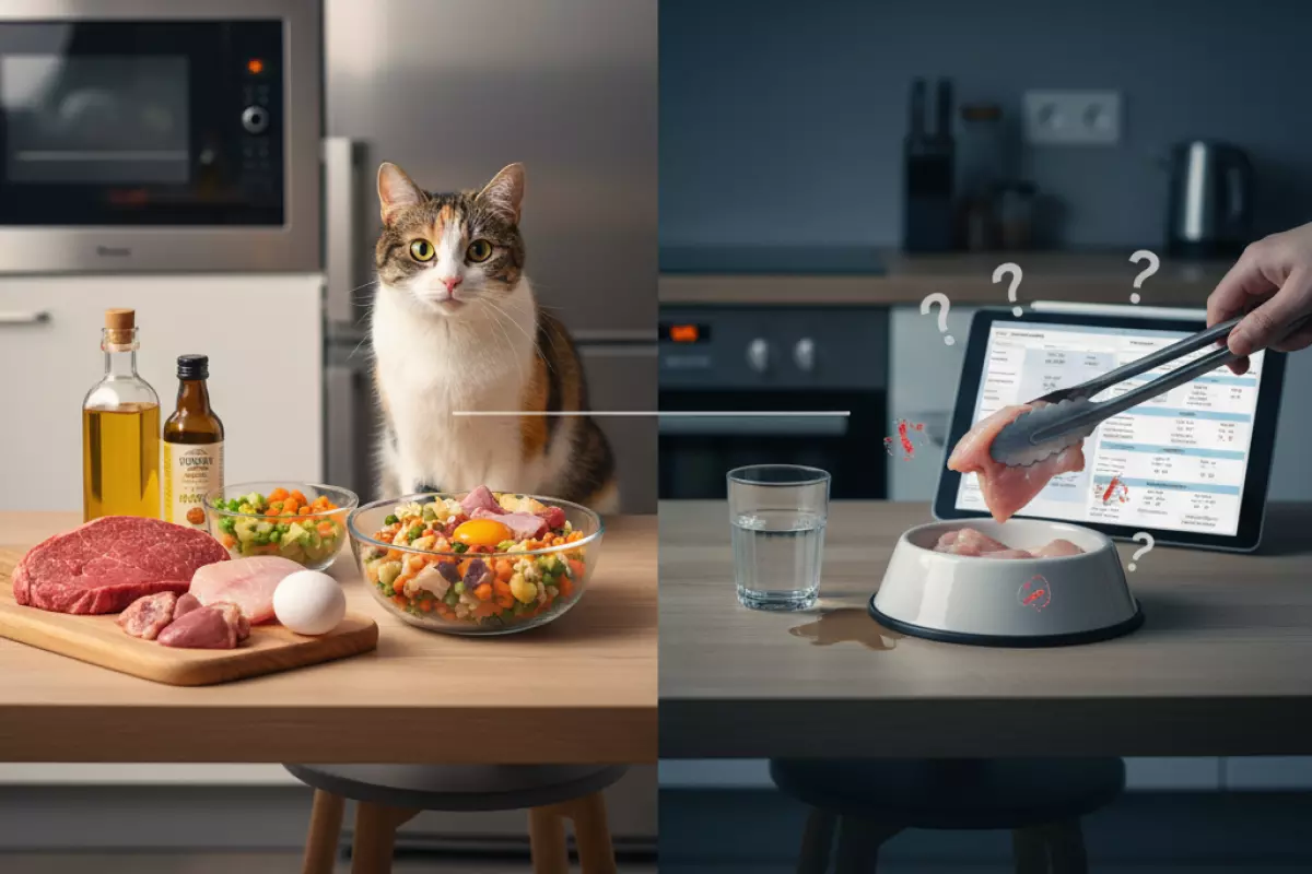 Смешанный режим «то пакетик, то курочка» часто выглядит удобным, но у кошек он нередко приводит к расстройствам ЖКТ и путанице с нормами. У промышленного рациона и домашней еды разная плотность калорий, состав минералов и логика балансировки. Если соединять их наугад, легко получить перекосы: где-то будет недобор белка, а где-то — лишний фосфор или жир.