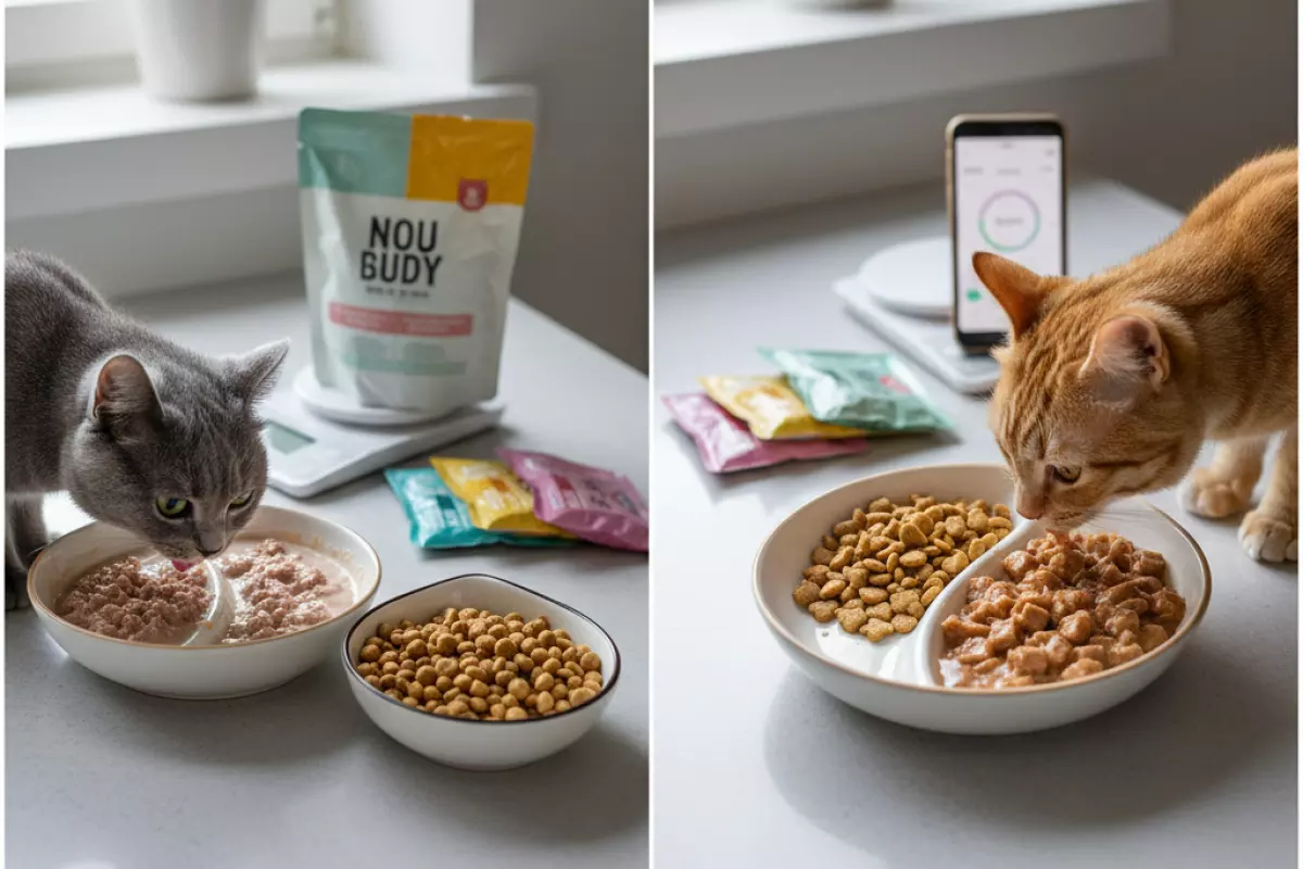 Комбинированное питание удобно тем, что можно совместить разные задачи: гранулы помогают с «перекусами» и дозированием, а паучи и консервы добавляют влаги и обычно лучше подходят привередам. Главное — не смешивать «на глаз», а считать общую суточную норму калорий и держать понятный режим.