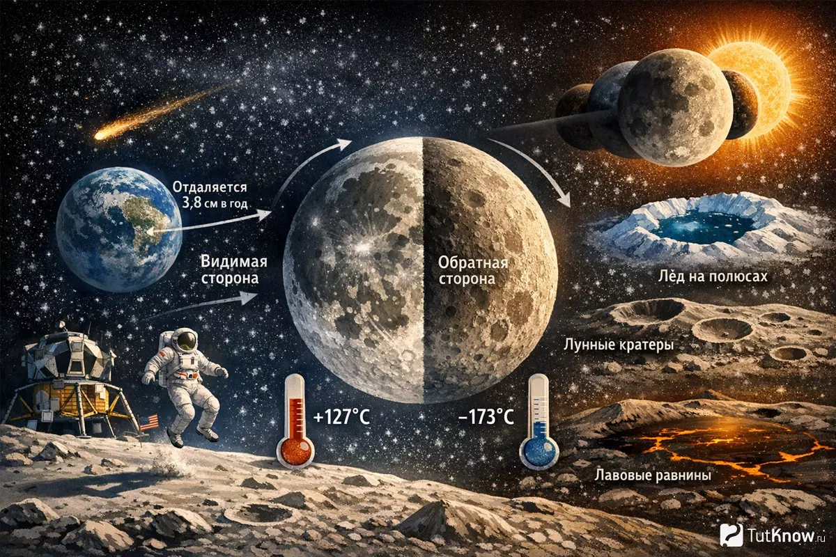 - Температура на Луне может резко меняться: от +127°C днём до −173°C ночью.