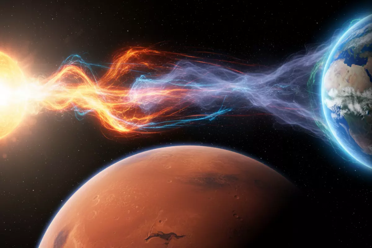 Потеря газовой оболочки шла не одним «рывком», а через постоянное выветривание: поток заряженных частиц от Солнца сталкивался с верхними слоями, разогревал их и выбивал атомы и молекулы в космос. На Земле значительную часть удара берёт на себя магнитосфера, а у Марса глобальной защиты почти не осталось, поэтому верхняя атмосфера оказалась гораздо более уязвимой.