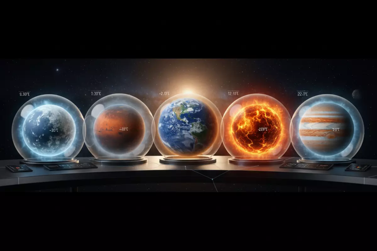 Один и тот же поток солнечного света может давать очень разные условия на поверхности: многое решает атмосфера, отражательная способность и то, как планета «распределяет» энергию между днем и ночью. Поэтому соседние по орбитам миры иногда отличаются по температуре сильнее, чем ожидаешь по одной только удаленности.