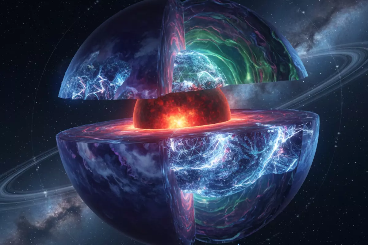 Внутри ледяных гигантов слои устроены не как у каменистых миров: там почти нет твёрдой поверхности, а границы между оболочками могут быть «размытыми» из‑за высоких температур и давления. В упрощённом виде выделяют внешнюю газовую оболочку, глубокую «ледяную» мантию из летучих соединений и компактное ядро из более тяжёлых веществ.
