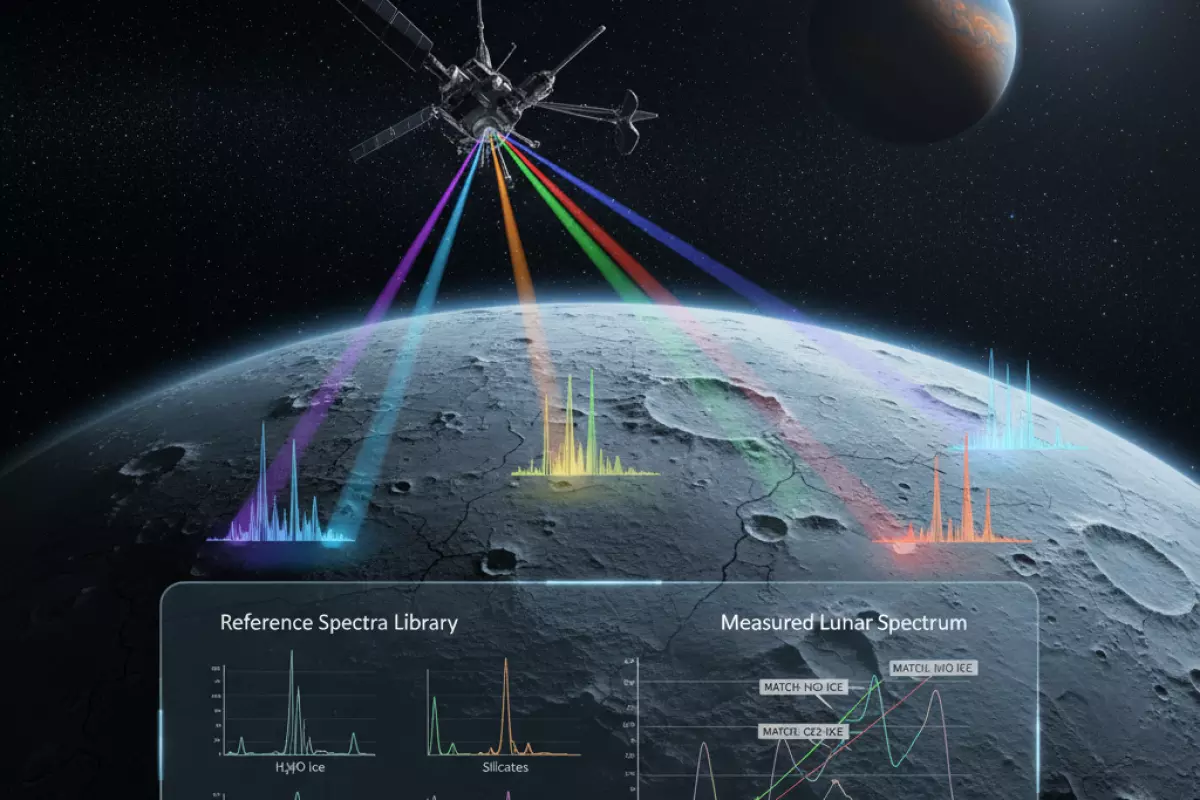 Состав внешнего слоя можно «прочитать» по тому, как он отражает, поглощает или излучает свет. Разные вещества оставляют в спектре характерные провалы и пики — как отпечатки пальцев. Поэтому, даже не садясь на спутник, ученые сопоставляют измеренный сигнал с лабораторными эталонами и получают список вероятных компонентов.