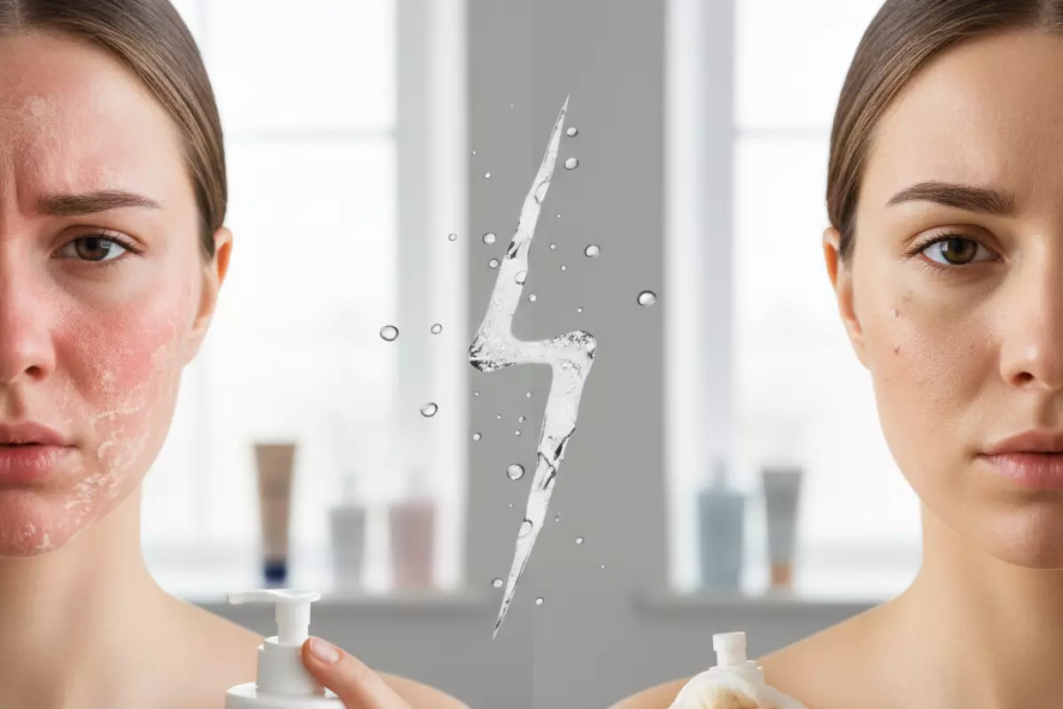 Слишком частое или жёсткое очищение (кислотные гели дважды в день, спиртовые средства, горячая вода) может повреждать липидный слой. В ответ кожа начинает терять влагу, краснеть, шелушиться, а иногда — вырабатывать больше себума, чтобы «компенсировать» сухость.