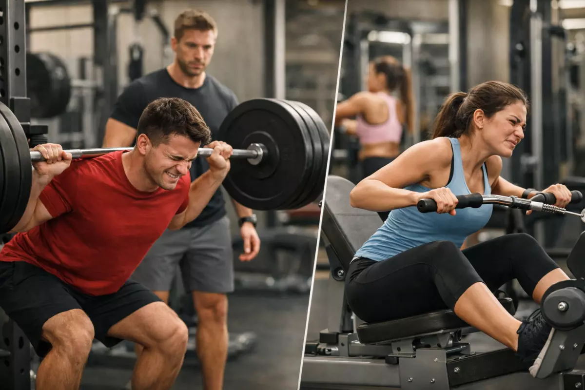 Когда всё внимание уходит на вес, количество повторений или скорость, качество движения отходит на второй план. Это особенно опасно в упражнениях со свободными весами, но и в тренажёрах плохая техника тоже создаёт лишнюю нагрузку не туда, куда планировалось. В результате целевые мышцы недорабатывают, а суставы и поясница получают лишний стресс.