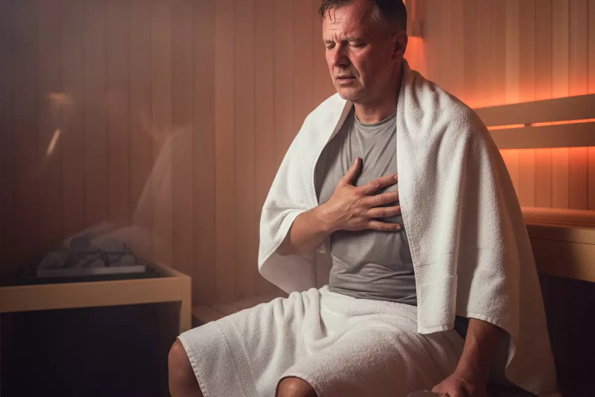 Перегрев в парной — это не просто «стало слишком жарко». При высокой температуре и влажности тело хуже отдает тепло, из-за чего быстро растет нагрузка на сердце и сосуды, а также повышается риск обезвоживания и теплового удара. Опасность в том, что самочувствие может ухудшиться резко: еще минуту назад «терпимо», а затем — слабость, потемнение в глазах и тошнота.