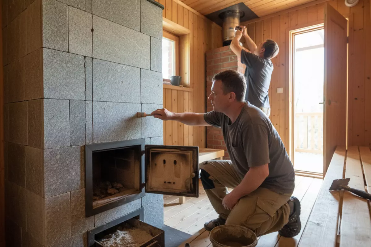 - Печь и дымоход. В теплую погоду тяга нередко слабее, а после зимы в каналах остаются сажа и мусор. Это влияет и на безопасность, и на комфорт растопки.