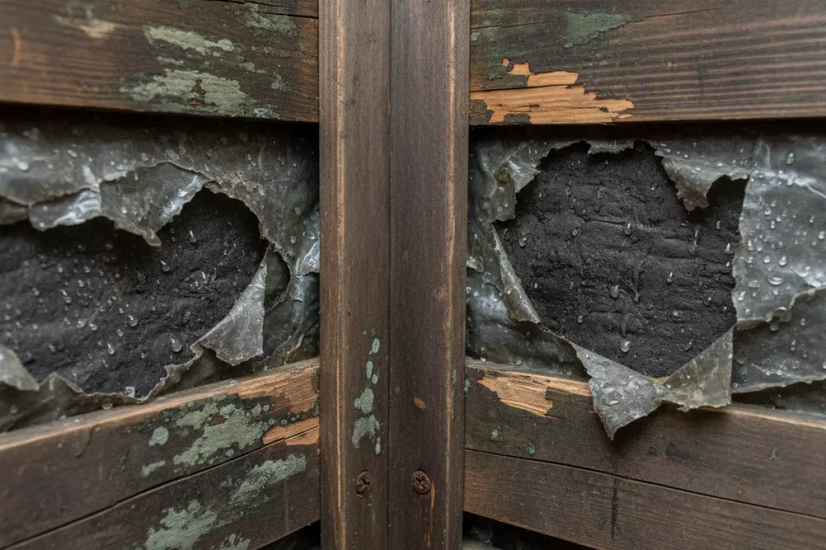 - Древесина: циклы «намокло — высохло» ведут к короблению, трещинам, расхождению швов и появлению плесени.
