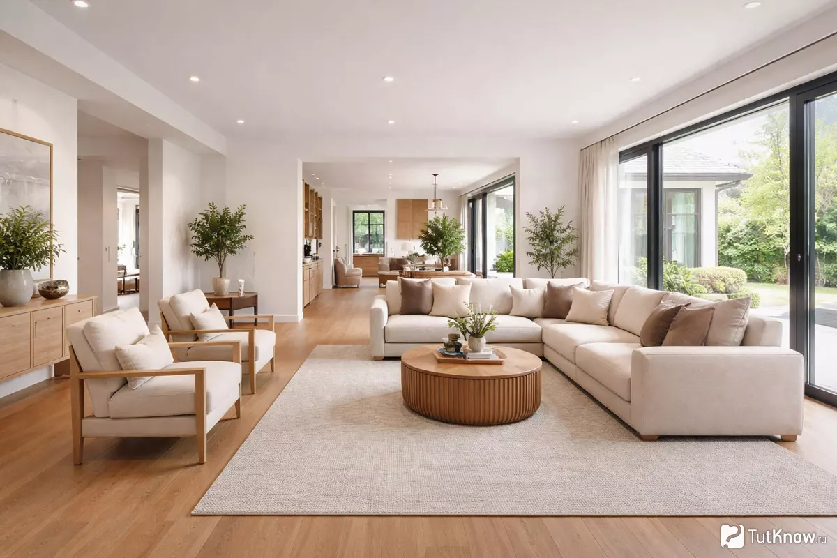 | Путь к кухне или столовой | Оставлять прямой и понятный маршрут, не заставлять проход креслами или журнальными столиками. | Размещение мебели, мешающей быстрому перемещению между зонами. |