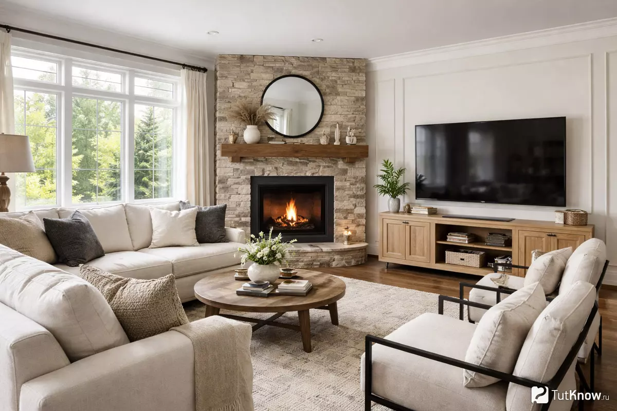 В частных домах часто хочется объединить уют живого огня и комфорт просмотра фильмов. Но если расположить камин и телевизор бездумно, можно столкнуться с бликами на экране, неудобной мебелью или перегрузкой пространства. Грамотная планировка позволяет подчеркнуть оба акцента и сделать комнату максимально функциональной.