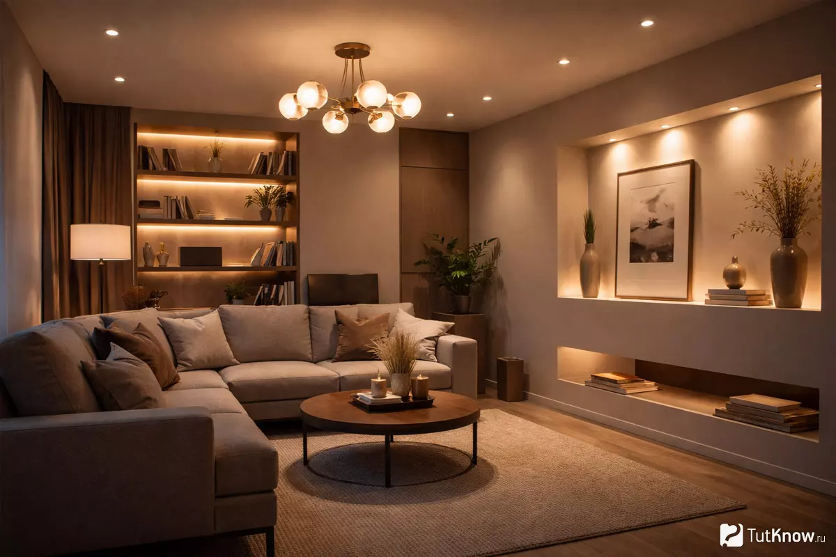 | Декоративное | Добавляет настроение и стиль | Светодиодные ленты, подсветка ниш | Визуально расширяет пространство, зонирует |