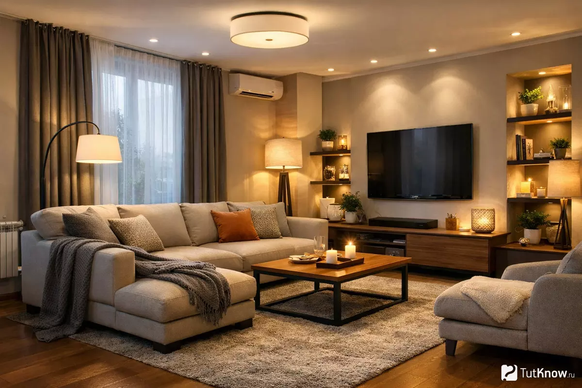 Примеры распределения света в гостиной