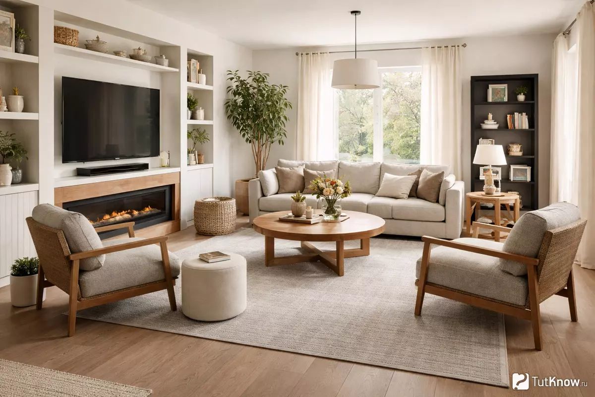 - Расположение мебели по кругу или полукругом для создания уютной атмосферы.