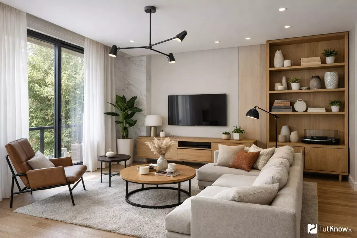 | Скандинавский + Лофт | Нейтральные цвета, простые формы, натуральное дерево | Избыток грубых поверхностей, слишком тёмная палитра |