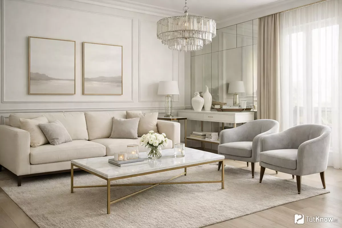 В интерьерах гостиных этот стиль часто выбирают те, кто ценит уют и элегантность, но не хочет излишней помпезности. Здесь нет массивной лепнины, золота или тяжёлых портьер — только сдержанная роскошь и актуальные материалы. Пространство выглядит светлым и просторным за счёт грамотного сочетания классических элементов и современных акцентов.