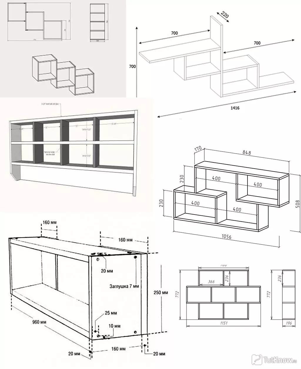 Чертежи популярных вариантов полок