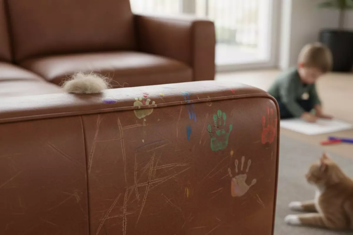 Сложности начинаются там, где поверхность легко царапается, впитывает пятна или боится воды. В быту это вылезает быстро: следы от фломастеров, липкие ладони, когти, шерсть, влажная уборка и случайно пролитый сок. Поэтому при выборе обивки и отделки лучше заранее понять, что выдержит регулярные «испытания», а что потребует постоянного ухода и нервов.