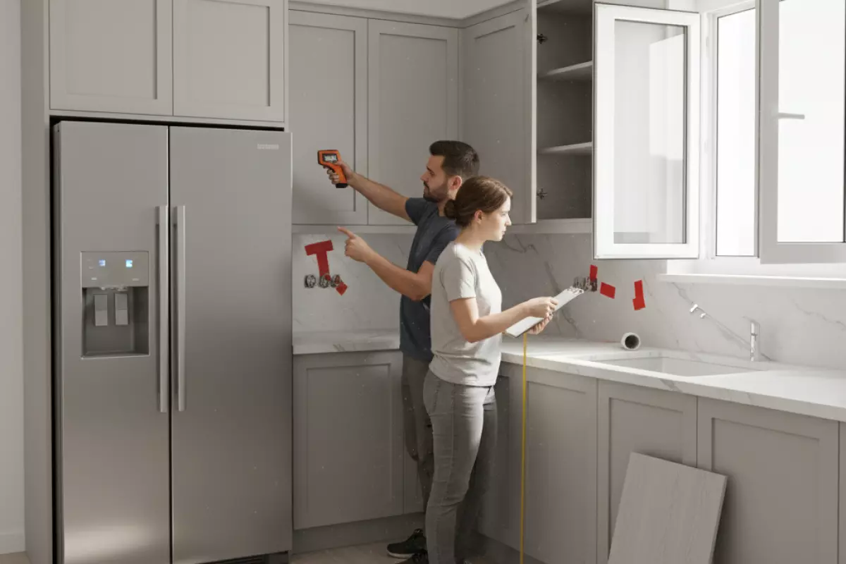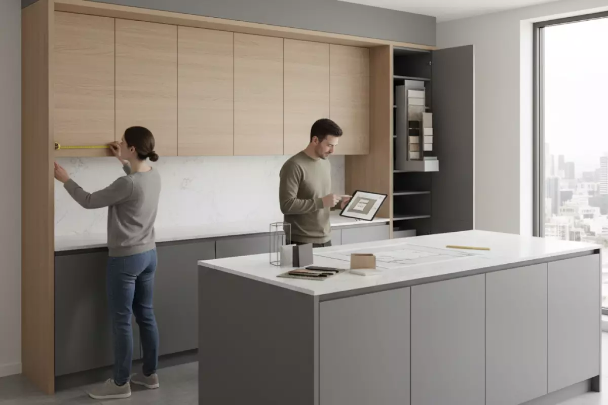 Снимать размеры для будущего гарнитура лучше не «по периметру», а по точкам, которые реально влияют на планировку: углы, выступы, коммуникации, открывание дверей и окон. Ошибка в пару сантиметров часто всплывает уже на монтаже — когда не встаёт холодильник, не открывается фасад или не помещается столешница.