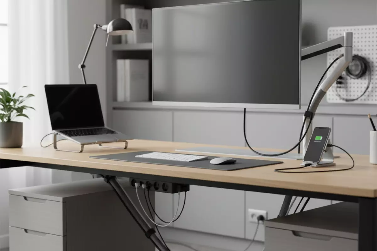 Провода и гаджеты чаще всего «съедают» порядок на столе: зарядки путаются, блоки питания лежат на виду, а розетка превращается в клубок. Исправить это проще, чем кажется — достаточно заранее продумать, где будет питание, куда уйдут лишние метры и как техника встанет на мебель без лишних компромиссов.