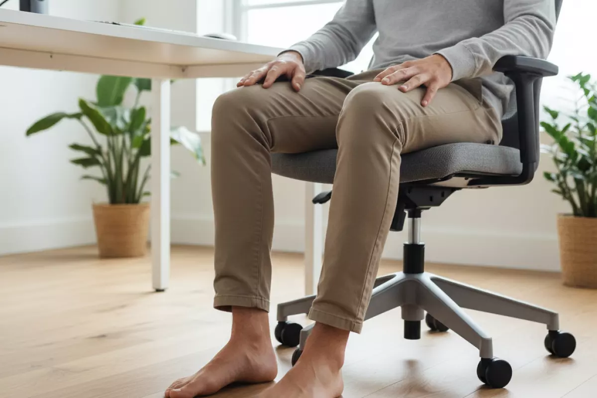 | Привычка сидеть «на носочках» | Пятки редко касаются пола | Перегрузка переднего отдела стопы | Сделай опору полной подошвой; при необходимости — небольшая подставка, чтобы пятка уверенно стояла |