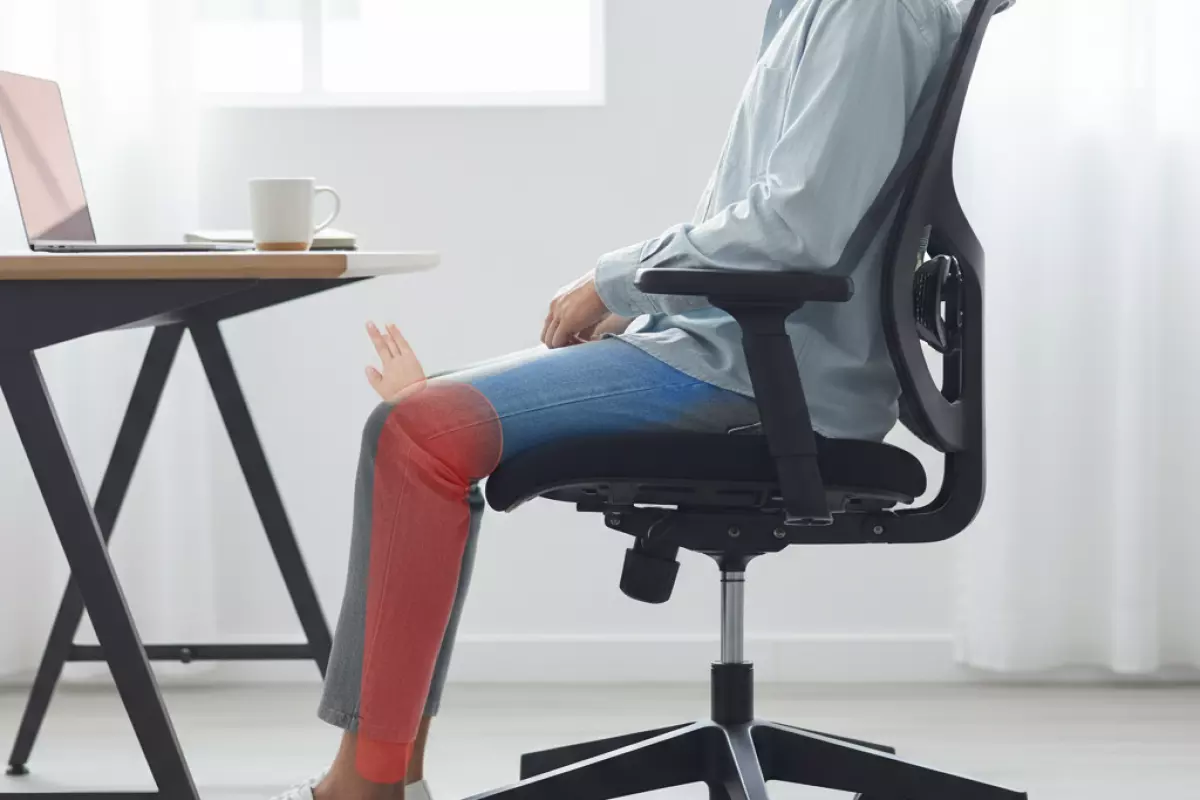 Слишком длинное сиденье упирается в подколенную область, из-за чего ноги быстрее «затекают», а ступни начинают искать опору. Слишком короткое — уменьшает площадь поддержки бедра, и нагрузка уходит в ягодицы и поясницу. Нужен баланс: бедро опирается уверенно, но край не пережимает сосуды и нервы под коленом.