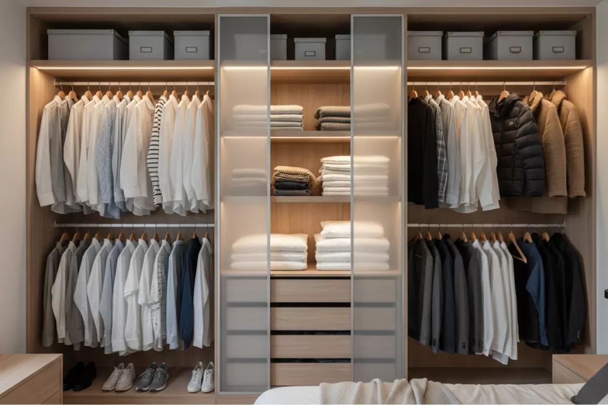 Украшения, ремни, часы, зарядки, косметичка, аптечка, а иногда и документы лучше хранить в небольших отделениях. Тут решают органайзеры, разделители, отдельные коробки и понятная система, чтобы мелочи не смешивались.