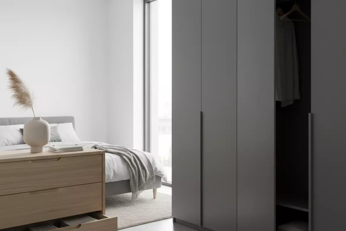Ящики требуют свободного места перед фасадом, распашные двери — радиуса открывания, а раздвижные системы — ровной геометрии и аккуратной установки. Ошибка — поставить мебель так, что проход становится узким или ящик упирается в кровать/тумбу.