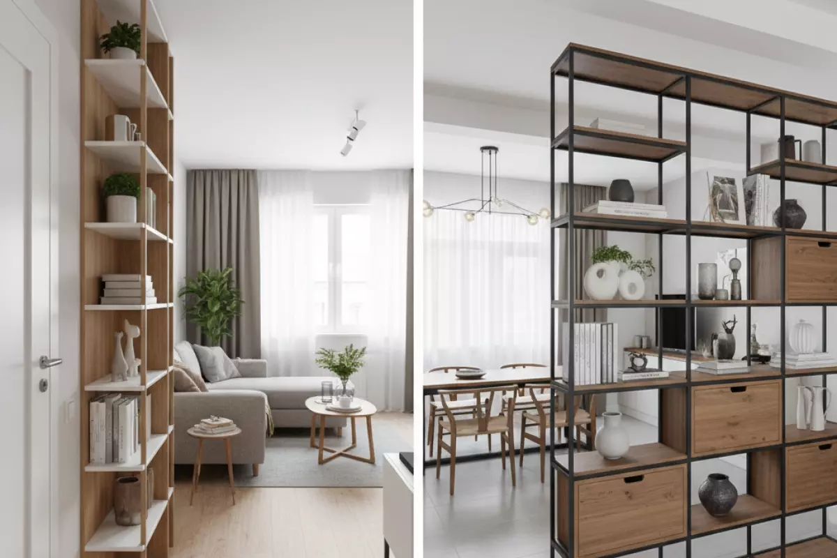 | Студия/евродвушка, нужно зонирование | Стеллаж-перегородка, двусторонний или с аккуратной спинкой | Проходы вокруг; безопасность; не перекрывать свет | Ставить вплотную к окну и затемнять комнату |