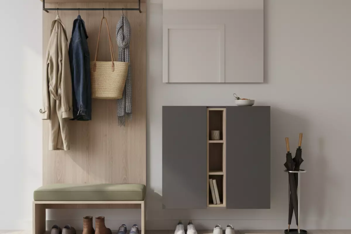 Банкетка, тумба, этажерка, отдельная вешалка, ключница, пуф — по отдельности всё полезно, вместе создаёт визуальный шум. Лучше выбирать комбинированные решения: тумба с сиденьем и ящиками, зеркало со скрытой полкой, шкаф с секцией под обувь.