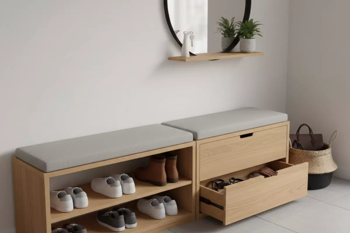 | Слишком много разрозненных предметов | Каждый элемент «съедает» кусок пространства | Комбинированный модуль: сиденье + хранение + крючки | Функций больше, а мебели визуально меньше |
