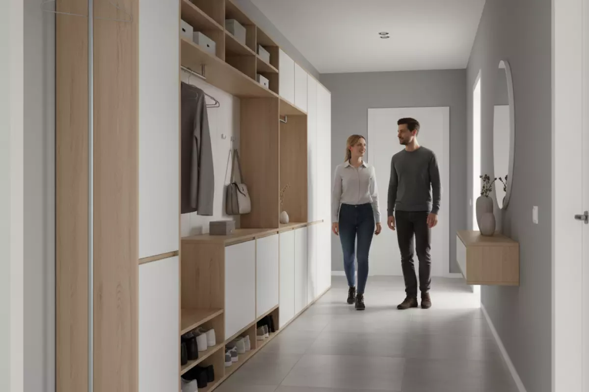 Если смотреть на прихожую как на набор привычек, а не просто «узкое помещение», становится понятно, почему стандартные решения не работают. Дальше уже проще подбирать хранение: под проход, под ежедневные сценарии и под сезонные изменения.