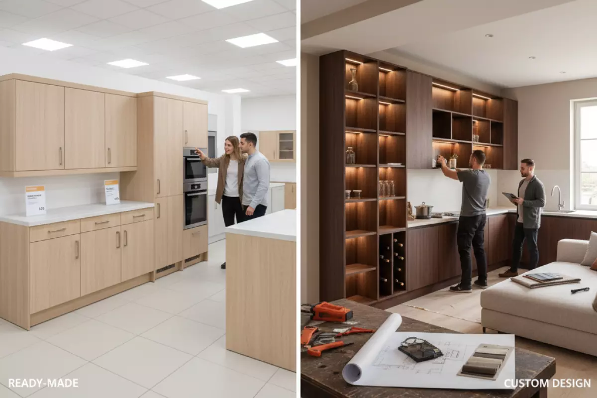 Если геометрия простая и есть запас по месту, готовые решения часто оказываются выгоднее по времени и бюджету. Но когда помещение «сложное» и каждый сантиметр на счету, индивидуальная подгонка нередко экономит нервы и сохраняет полезный объём — особенно в кухнях, прихожих и встроенных системах хранения.