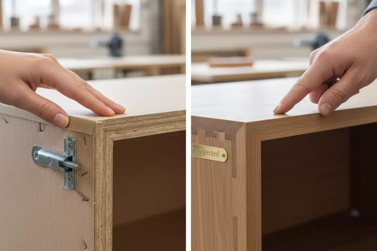 - Сборка и крепёж. Посмотрите на места соединений: лишние отверстия, трещины у стяжек, «гуляющие» полки — признаки экономии на технологии.