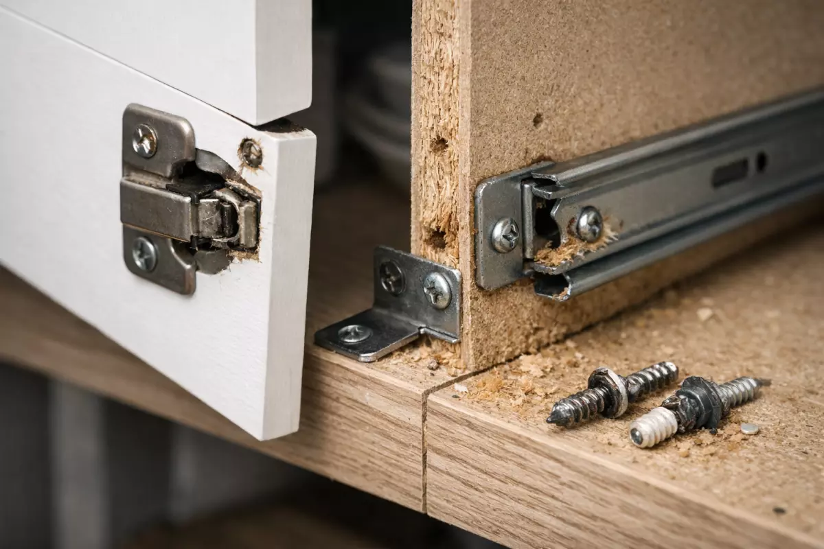 Сигналы износа обычно проявляются не сразу «поломкой», а мелкими изменениями в работе: дверца начинает вести себя иначе, выдвижные части ходят неровно, а крепёж приходится подтягивать всё чаще. Если игнорировать такие мелочи, нагрузка перераспределяется на соседние узлы, и проблема быстро становится комплексной.