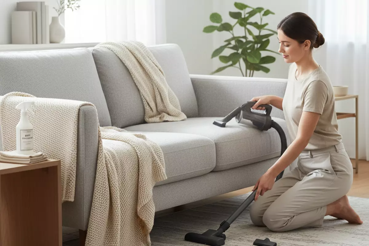- Пылесосьте мягкие поверхности насадкой для мебели, проходя швы, стыки и зоны под подушками — там скапливается больше всего крошек и пыли.