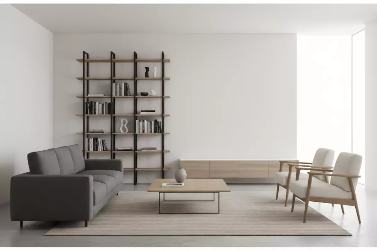 | Добавить «воздуха» в небольшое помещение | Модели на ножках, тонкие подлокотники, открытые стеллажи вместо глухих секций | Виден пол и просветы — объекты кажутся легче | Сканди, japandi, mid-century |