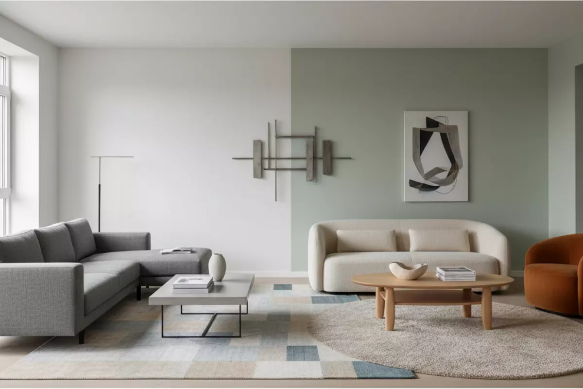 | Слишком разные формы: округлое и «мягкое» рядом с острым и угловатым | Геометрия не поддерживает общий ритм | Ввести «мостик»: предмет со смешанной формой (овальный стол, светильник с мягкими линиями) |