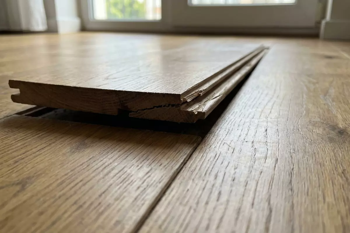 | Тёплый пол без плавного режима | Пересушивание снизу, градиент по толщине | Изгиб планки и повышенная нагрузка на кромки | Расхождение стыков, сколы, «домик» на планке | Плавный прогрев, ограничение температуры, контроль влажности в комнате |