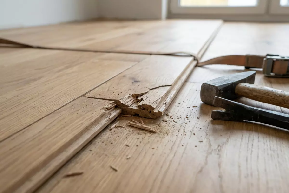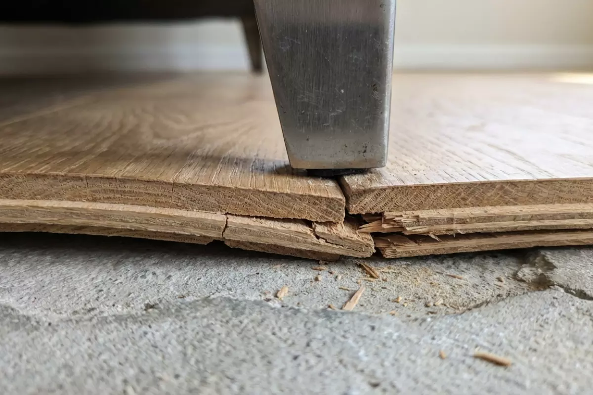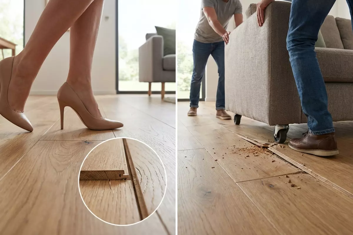 | Падение тяжёлого предмета | Удар по кромке и срез профиля | Скол, трещина, затем стык перестаёт держать | Край замка тоньше и хуже переносит удар, чем середина планки | Защита рабочих зон, аккуратный перенос, подложки при ремонте |
